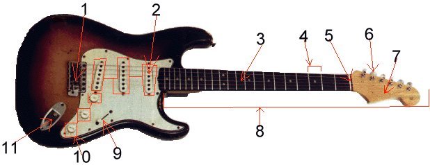 No ITALIANO INGLESE 1 Mi E (Mi cantino) 2 Si B 3 Sol G 4 Re D 5 La A 6 Mi E (Mi basso)Ogni corda dista dalla precedente un intervallo di quarta giusta, ovvero 2 toni e 1/2, fa eccezione il SI che dista dal SOL solo 2 toni. Ogni tasto della chitarra corrisponde ad un semitono (= 1/2 tono), cioè la distanza che intercorre tra il suono di due tasti immediatamente adiacenti è un semitono. |